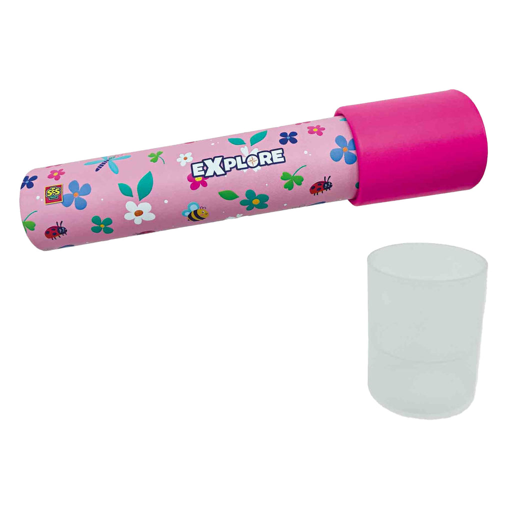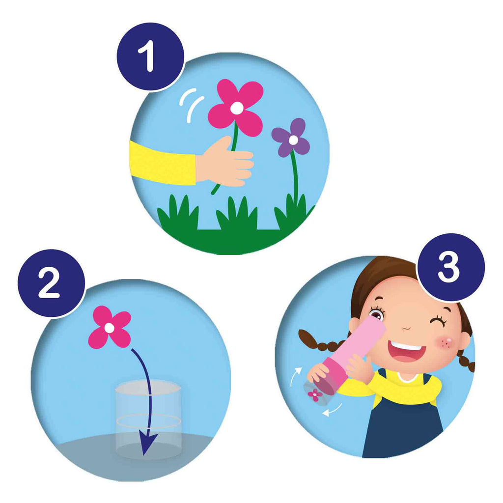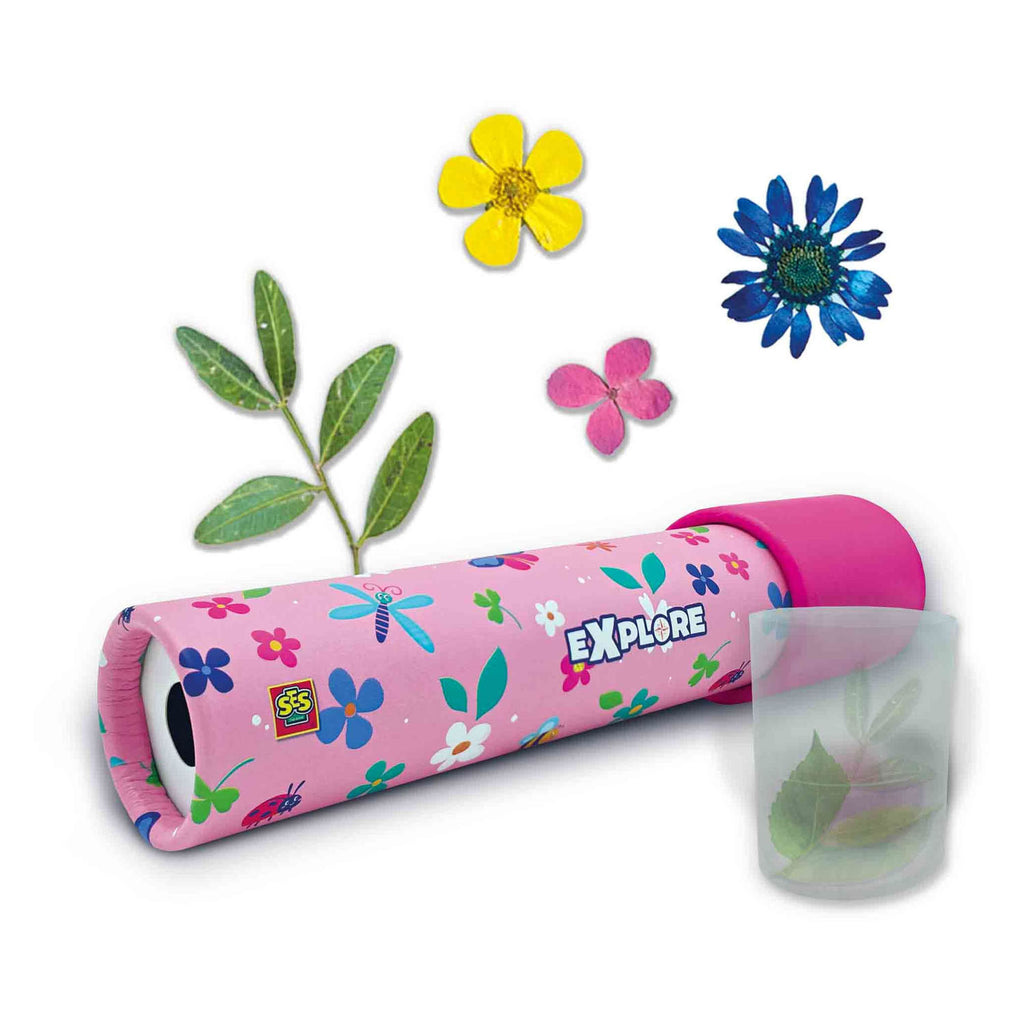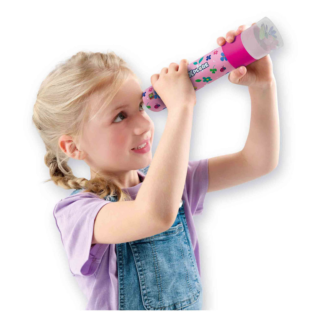 Deze caleidoscoop stimuleert kinderen om naar buiten te gaan en de wereld te ontdekken! De caleidoscoop met transparante opzet dop kan namelijk gevuld worden met verschillende ontdekkingen uit de natuur! Zoek samen zaadjes, bloemen, blaadjes of schelpjes in de tuin, op de streng of in het bos en kijk hoe deze caleidoscoop de mooiste patronen en kleuren onmogelijk maakt! De caleidoscoop is steeds opnieuw te gebruiken. Maak nieuwe combinaties, voor verrassende kleuren en inspirerende effecten. Kenmerken • Stimuleert buitenspelen • Stimuleert interesse in de natuur • Door de transparante opzet dop rossen opnieuw te gebruiken • STEM-speelset Geschikt voor kinderen van 3 jaar en ouder.
