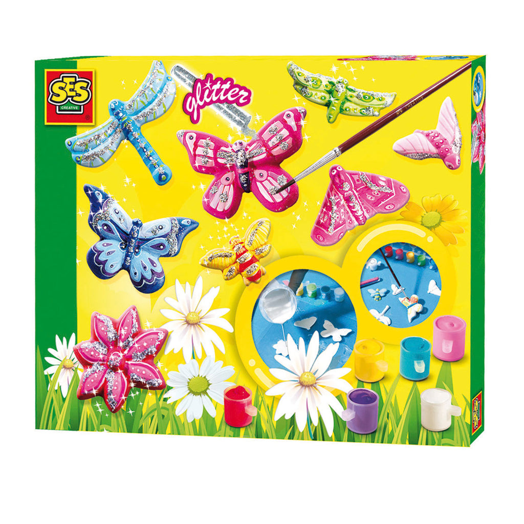Maak de mooiste beeldwerkjes van gips met SES Creative. Nadat je deze vlinders en bloemen van gips hebt ingebracht, kun je ze gaan schilderen in de kleuren en verder slaapkamer met glitterstof.
