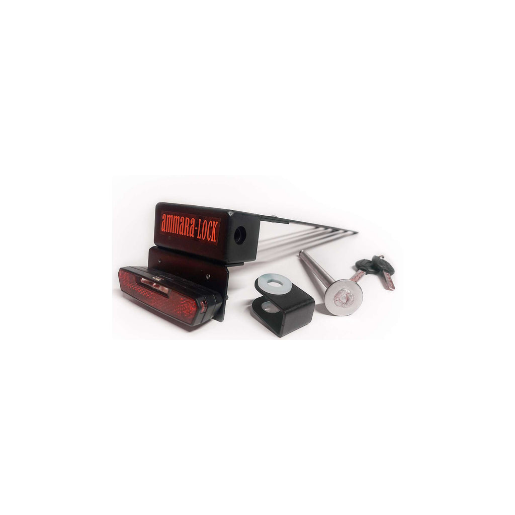 Het Ammara-Lock is speciaal ontworpen om het dieven vrijwel onmogelijk te maken om de accu van de fiets te verwijderen, wat een significante afschrikkende werking heeft tegen diefstal. Bovendien is het ontwerp van het slot compatibel met de standaard afmetingen en vormen van bagagedragers, waardoor het een praktische oplossing is voor verschillende e-bike modellen. Dit slot past op e-bike met accu in de achterdrager van de merken: Cortina, Burgers, Batavus, Amigo, Pegasus, Freebike, Gazelle, Giant, Koga, Sparta, Stella, Shimano en Siena. De originele achterverlichting kan gebruikt worden. Het product wordt exclusief achter verlichting geleverd.