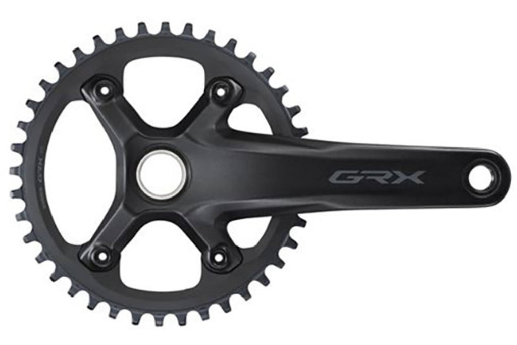 Shimano GRX - grindcrankstel - 1x11-speed SHIMANO's nieuwe FC-RX600-1 crank biedt de juiste balans tussen lichtheid en efficiëntie voor gevarieerd terrein. Versnellingsopties die passen bij de specifieke eisen van rijden op grind, met kleinere schakelstappen om het trapritme vast te kunnen houden. Hij is verkrijgbaar met kettingbladen van 40T en crankarmlengtes van 170, 172,5 en 175 mm. KENMERKEN Optimale gekozen voor gezamenlijke terreinen en diverse rijstijlen Kleinere schakelstappen om op bekende trajecten het ritme vast te houden Versnellingscombinatie: 40T