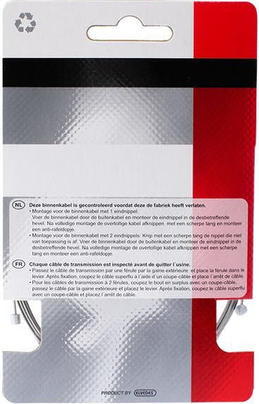 Le câble intérieur Simson Gear convient à tous les engrenages et dérailleurs Shimano, Sram, Suntour, SA Linea. Le câble a une longueur de 2,25 et est en acier inoxydable afin que le câble s'étire moins rapidement. Le câble intérieur a un baril et un mamelon en poire. Der. / Câble de vitesse 2,25mtr. Engrenage de câble intérieur Simson Spécifications : Couleur : argent Matériau : acier inoxydable Longueur du câble : 2,25 mètres Épaisseur du câble : 1,1 mm Type de mamelon : mamelon cylindrique et mamelon poire Type de produit : 020215 Convient pour : Shimano Sram Suntour Sturmey Archer Linea Le dérailleur/engrenage Simson Le câble convient à tous les dérailleurs et dérailleurs Shimano, Sram, Suntour, SA Linea. Le câble a une longueur de 2,25 et est en acier inoxydable afin que le câble s'étire moins rapidement. Le câble intérieur a un baril et un mamelon en poire. Coupez le mamelon qui ne s'applique pas. Faites passer le câble intérieur à travers la gaine extérieure et, si nécessaire, à travers le levier de vitesses en premier. Ajustez l'engrenage et coupez le câble intérieur ± 2 cm au-delà de la vis Allen. Universel