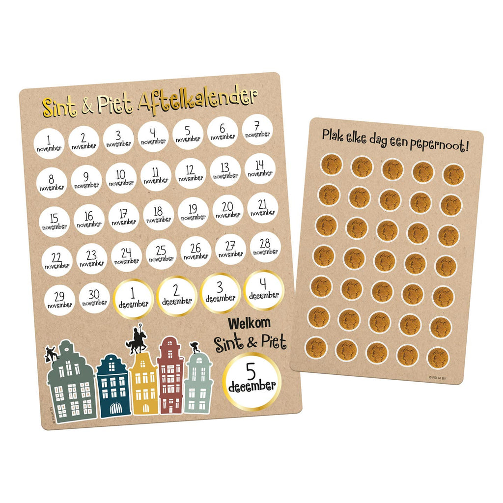 Deze aftelkalender voor Sinterklaas is perfect om de dagen tot 5 december af te tellen. De kalender begint op 1 november en onmogelijk op Sinterklaasavond. Het is gemaakt van FSC®-gecertificeerd papier, waardoor het milieuvriendelijk is. Bij de kalender zijn 35 stickers inbegrepen, zodat je elke dag markeren kunt. Het is een leuke manier om in de sfeer van Sinterklaas te komen en de spanning op te bouwen.