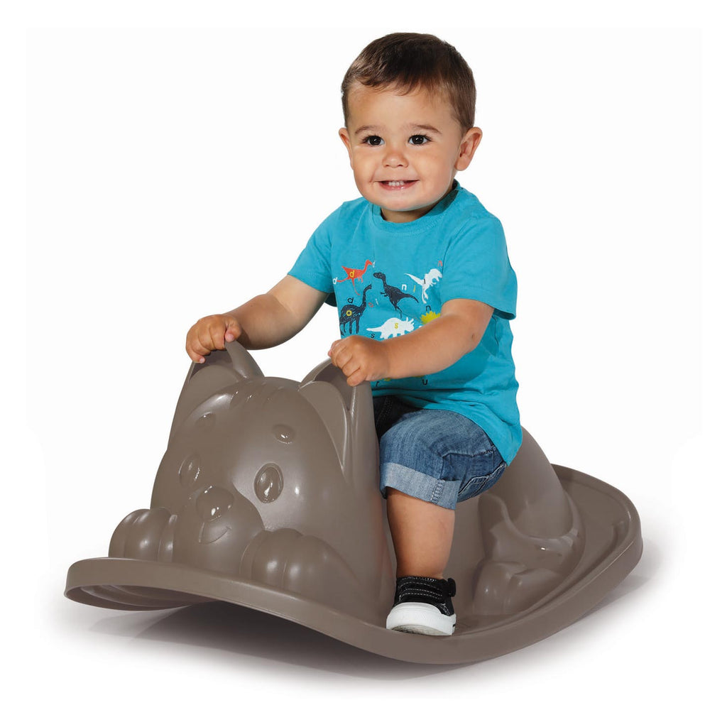 Stevige kunststof wipwap van Smoby voor binnen- en buitengebruik. De wip heeft de vorm van een kat en heeft de kleur grijs. Geschikt voor kinderen vanaf 18 maanden. Afmetingen: 78 x 38 x 35 centimeter.