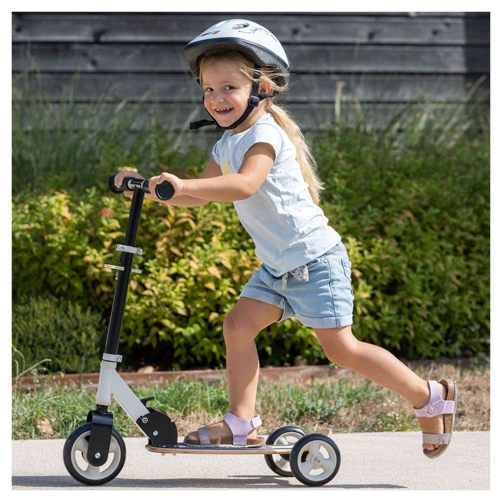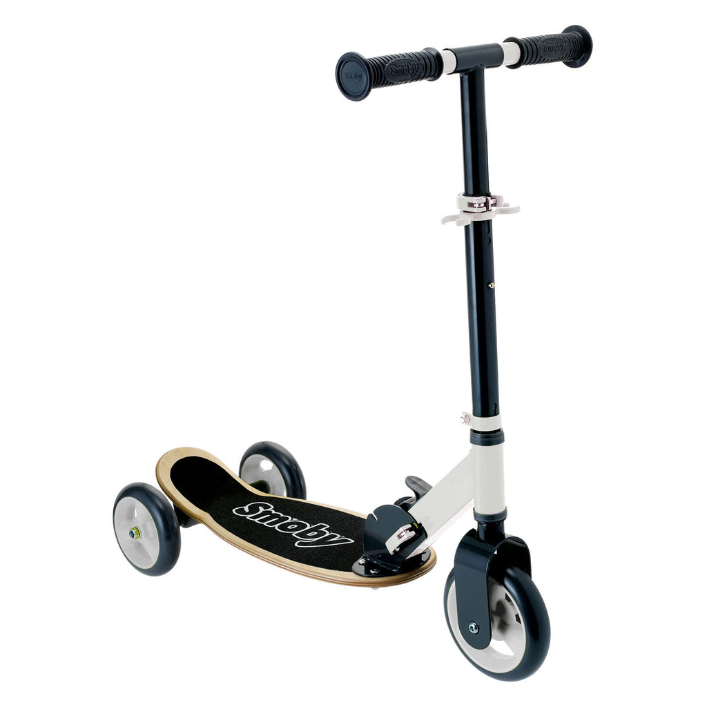 Step met 3 wielen van metaal en hout, met opvouwbaar frame en inschuifbare handgrepen. De voetensteun heeft antislip en de stuur is in hoogte verstelbaar. Geschikt vanaf 3 jaar en te gebruiken tot een gewicht van 20 kilogram.