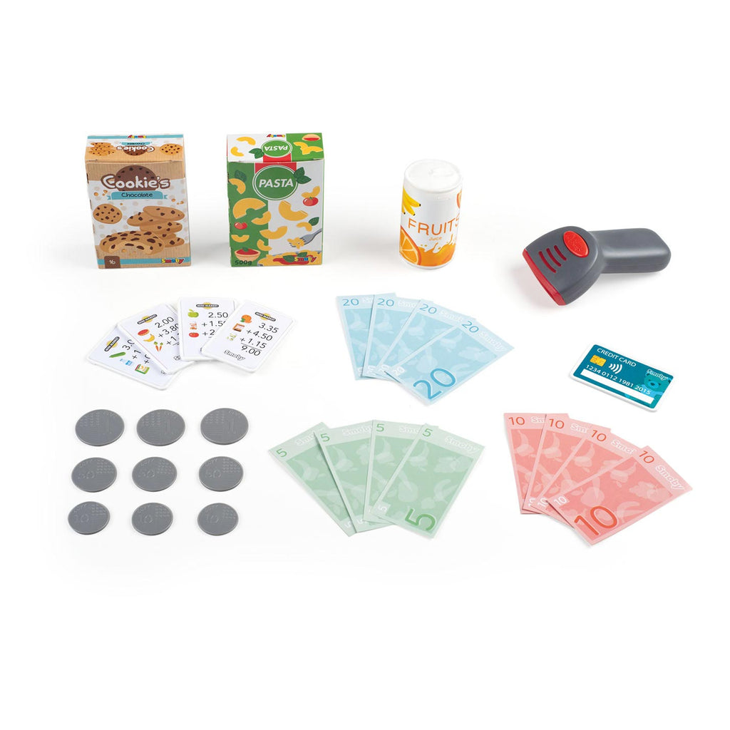 Bliep, bliep, bliep… dat is dan 20 euro alstublieft! Vind jouw soort afrekenen bij de kassa ook altijd zo leuk? Met deze 30-delige speelgoedkassa van Smoby runt jouw toekomstige ondernemer oorspronkelijk zijn of haar eigen winkel. De kassa en handscanner hebben realistische elektronische functies zoals licht, geluid en een rekenmachinefunctie.