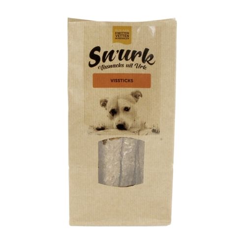 De Sn'urk Vissticks Van Schelvis 100 gr is een heerlijke vissnack voor de hond, 100% natuurlijk en rijk aan gezonde eiwitten, vetten en mineralen. Jouw hond geniet van deze lekkere recepten van Sn'urk, vissnacks uit Urk! Deze lekkere vissticks zijn 100% natuurlijk en gemaakt van echte vis, zonder kunstmatige toevoegingen en conserveringsmiddelen. Ze zijn grotendeels rijk aan eiwitten, gezonde vetten en mineralen, voor een gezonde, actieve hond met een mooie vacht en huid. Door het compacte formaat zijn de snacks ideaal om als tussendoortje aan jouw hond te geven. Graanvrij! De heerlijke vissmaak zal deze lekkere snacks al snel favoriet maken bij jouw hond!