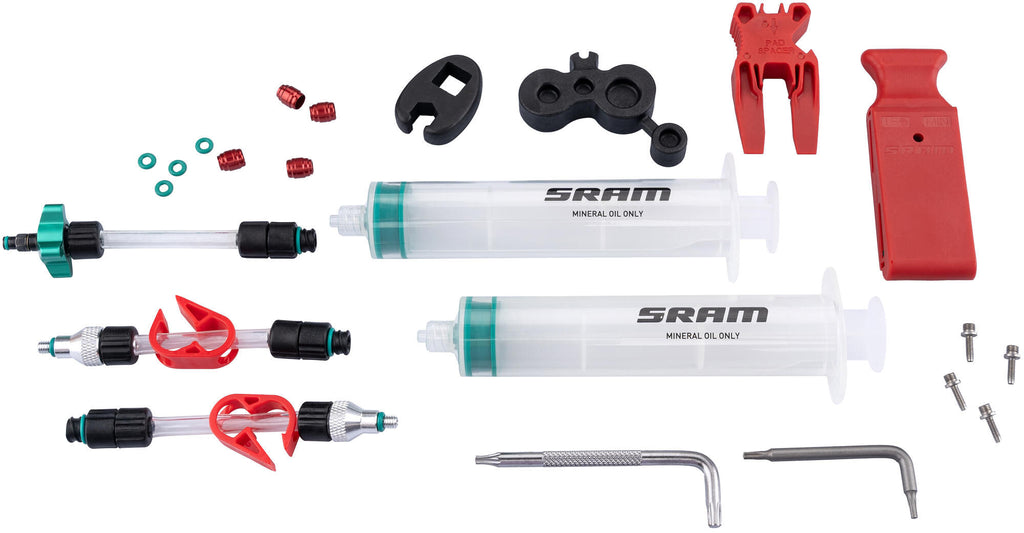 Voor hydraulische schijfrem "Maven / Motive / DB8 / DB6 / DB4". Bestaande uit: 2 spuiten, 2 klemmen met schroefaansluiting, 1 ontluchtingsrandaansluiting voor Maven, 2 kabelbevestigingsonderdelen, zespunt ster-profiel hoeksleutel T10/T25 (0.317.789/6), ontluchtingsblokje Hoofdkleur transparant Secundaire kleur groen Type/soort Toebehoren Type rem Scheibenbremse Variant hydraulisch
