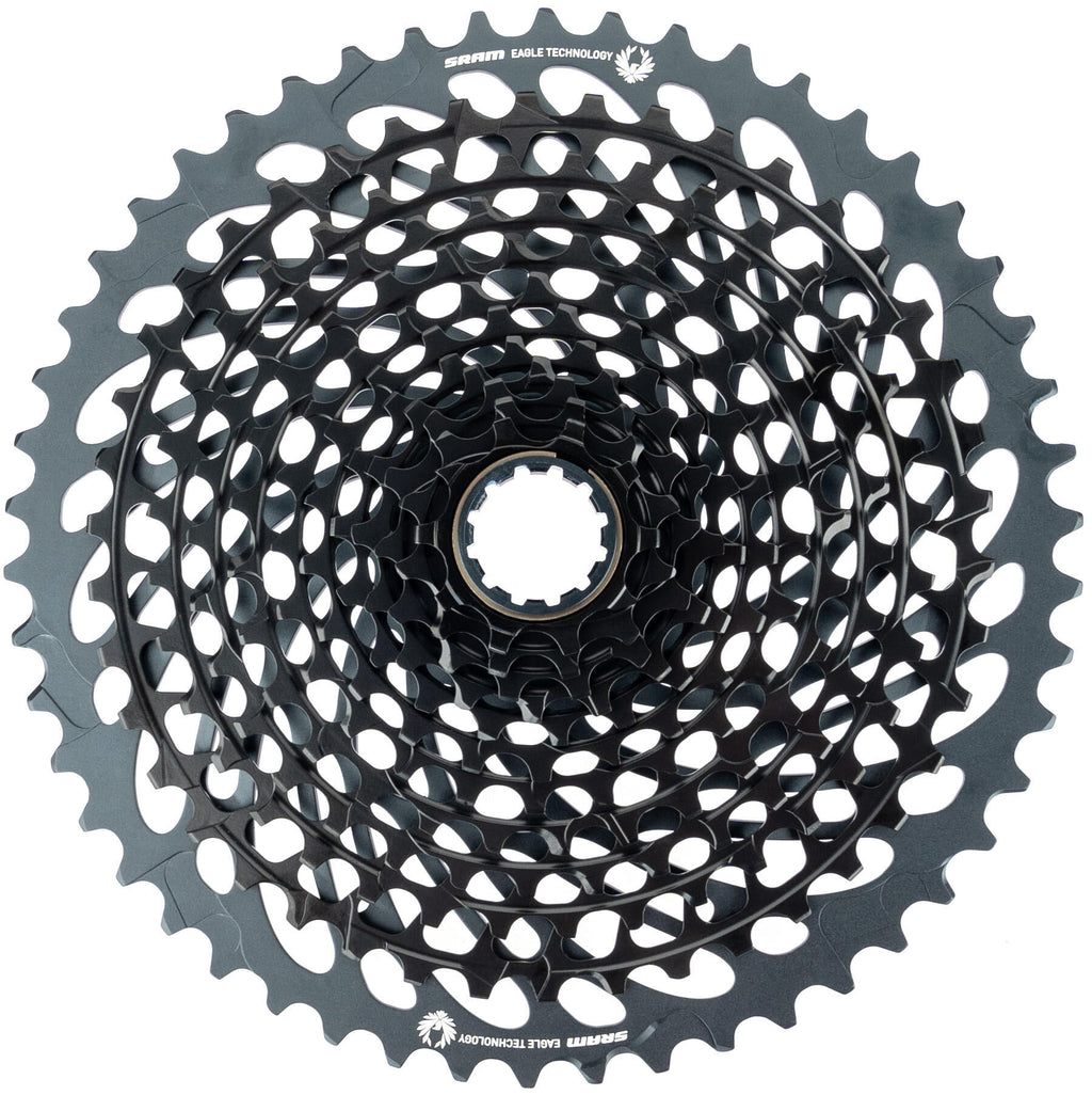 12-speed Eagle, CNC constructie van CrMo staal, groot tandwiel van aluminium, passend voor XD freewheel-body SRAM "XG-1295" cassetteDe "XG-1295" cassette van de SRAM "X01" groepset is perfect voor iedereen die het volledige schakelcomfort niet wil missen, zelfs op ruw terrein. De "XG-1295" is slechts iets zwaarder dan de "XG-1299" van de "XX1" groupset en maakt indruk met maximale duurzaamheid. De cassette, gefreesd uit aluminium en staal, biedt je 500% versnellingsbereik met 10-50 tanden en 520% met 10-52 tanden. Aantal tanden 10 , 12 , 14 , 16 , 18 , 21 , 24 , 28 , 32 , 36 , 42 , 50 Freewheel body XD Groot tandwiel 50 inch Hoofdkleur zwart Klein tandwiel 10 inch Opbouw 2 pakjes Opname cassette Systeemcompatibiliteit 12-speed Type/soort Artikel Verwisselbaar tandwiel nee