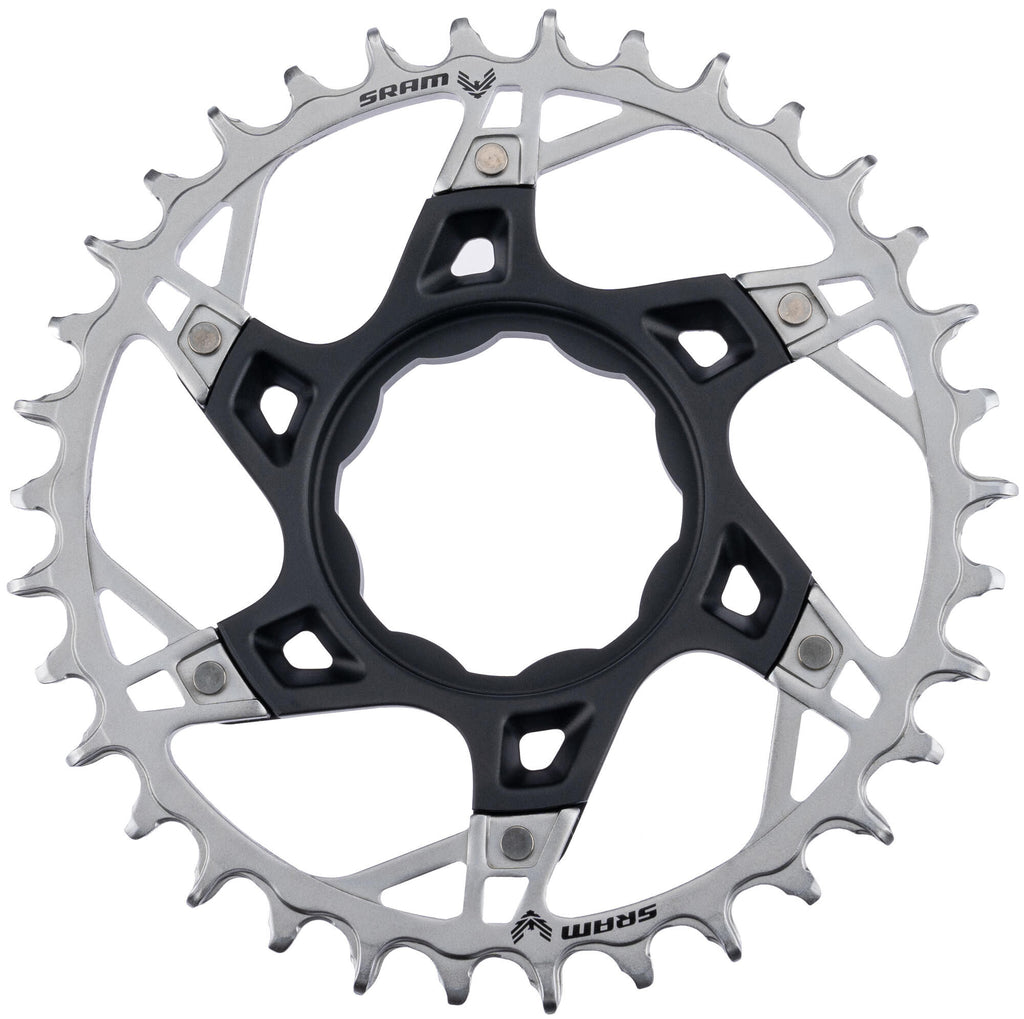 Aluminium spider, stalen kettingblad, zilver / zwart Voor directe montage voor TQ HPR50 Aantal tanden 34 Bevestiging Direct Mount Geselecteerde groep SRAM Hoofdkleur zilver Inzetbereik MTB Schakelstanden achter 1-fach , 12-fach Secundaire kleur zwart Type/soort Artikel