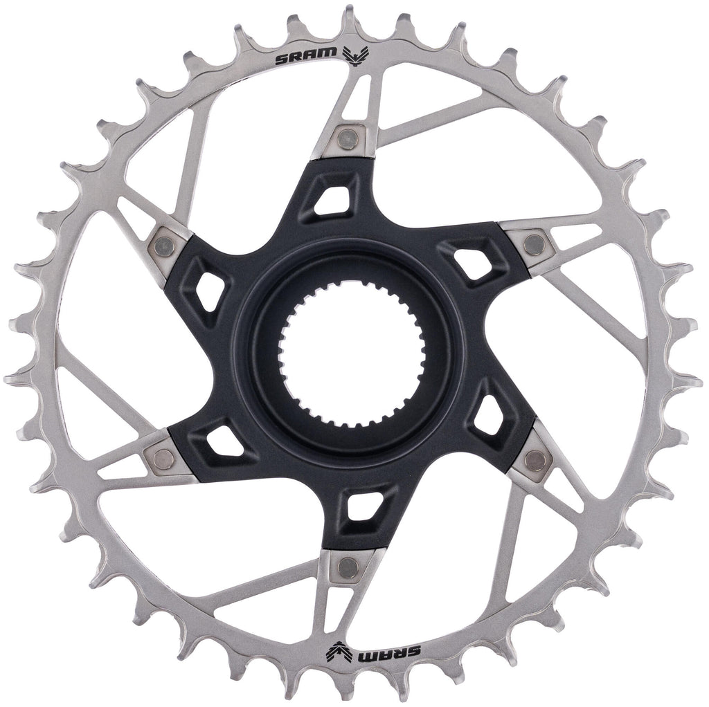 Aluminium spider, stalen kettingblad, zilver / zwart Voor directe montage voor Yamaha PW XM, PW X3, PWseries S2 Aantal tanden 38 Bevestiging Direct Mount Geselecteerde groep SRAM Hoofdkleur zilver Inzetbereik MTB Schakelstanden achter 1-fach , 12-fach Secundaire kleur zwart Type/soort Artikel