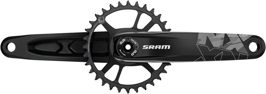 1-speed, DUB, zonder bracketset, zwart 11-/12-speed compatibel, cranks van aluminium 6000, kettingblad van staal voor directe montage, geschikt voor backet: BSA, Pressfit, BB30, BB30 Pressfit, kettinglijn: standaard 49 mm, Boost 52 mm, Fatbike 4" 66,5 mm, Fatbike 5" 76,5 mm, Q-factor 168 mm, gewicht: 705 g (175 mm, 32 tands) SRAM "NX Eagle" crankstelDe producten van de "NX Eagle" groep vertegenwoordigen de intrede in de 12-speed schakelwereld van SRAM. Het maakt indruk met zijn uitstekende prijs-prestatieverhouding, geavanceerde technologie en goede gevoel. De 1-speed crank-ster met aluminium armen en een stalen kettingblad is geschikt voor BSA-, Pressfit-, BB30- en BB30 Pressfit-lagers. Verkrijgbaar in verschillende versies. Aantal kettingbladen 1 Cranklengte 170.00 mm Hoofdkleur zwart Kettingblad groot 32 inch Systeemcompatibiliteit 11-speed , 12-speed Trapas DUB Type/soort Artikel Variatie crankstel