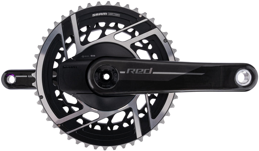 2-speed, DUB, zonder bracketset 12-speed compatibel, holle cranks van carbon, kettingblad van aluminium ter directe montage, kettinglijn 45 mm, Bluetooth en ANT+ zender-techniek, LED controlelamp voor bedrijfsklaar, terugzetten en lage batterijstand, naukeurigheid: +/- 1,5 %, tweezijdige meting, batterijwissel zonder gereedschap (CR2032) Aantal kettingbladen 2 Cranklengte 170.00 mm Hoofdkleur zwart Kettingblad groot 48 inch Kettingblad klein 35 inch Kettinglijn 45.0 mm Secundaire kleur grijs Systeemcompatibiliteit 12-speed Trapas DUB Type/soort Artikel Variatie crankstel