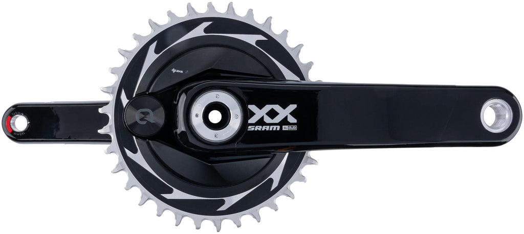 34 tands, 1-speed, DUB, zonder bracketset,zwart / zilver 12-speed compatibel, holle cranks van carbon, gefreesd kettingblad van aluminium voor schroefmontage, Wide as (kettinglijn 55 mm), Bluetooth -Low-Energy und ANT+ zender-techniek, meting op beide kanten, +/- 1,5 % nauwkeurigheid, waterdicht volgens IPX7 standaard, batterij CR2032 Aantal kettingbladen 1 Cranklengte 165.00 mm Hoofdkleur zwart Kettingblad groot 34 inch Secundaire kleur zilver Systeemcompatibiliteit 12-speed Trapas DUB Type/soort Artikel Variatie crankstel
