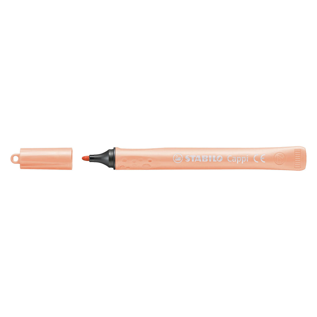 De STABILO Cappi Etui met 12 stiften is ideaal voor onderweg. De doppen kunnen aan een handige ring worden bevestigd, waardoor ze nooit meer kwijtraken. Zo drogen de stiften nooit uit zonder dop. De hoeveelheid buisvorm zorgt ervoor dat de stift niet weg kan rollen. Zelfs zonder dop kan de stift tot 24 uur gebruikt worden zonder uit te drogen. Inclusief 1 ring.