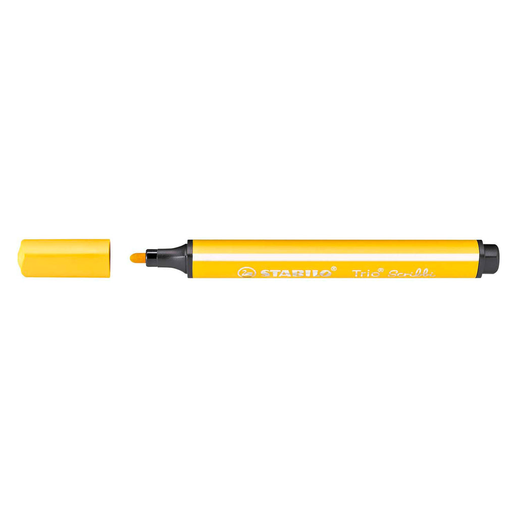 ONVERWOESTBAAR EN ONWEERSTAANBAAR Een dikke, driekantige viltstift met een onverwoestbare meeverende punt en super uitwasbare inkt, perfect voor enthousiaste kleine tekenaars! · Vrijwel onverwoestbare meeverende dikke punt · Driekantige vorm voor een stevige ergonomische grip · Schrijfbreedte 1,5 - 2 mm · Verkrijgbaar in 14 mooie kleuren · Super uitwasbare inkt, gemakkelijk te verwijderen van handen en uit kleding (voorweken aanbevolen voor het beste resultaat) · Dé viltstift voor kinderen vanaf 3 jaar. Onverwoestbaar voor enthousiaste kleine tekenaars De STABILO Trio Scribbi is een fantastische viltstift, ontworpen om zelfs de meest enthousiaste kleine tekenaars te trotseren. Het wetenschappelijk verleden meeverende dikke schrijfpunt, zorgt ervoor dat het punt terugveert als dit moeilijk wordt beïnvloed. Door de super uitwasbare inkt kunnen vlekken gemakkelijk uit kleding worden gewassen (voorweken altijd opgelost voor optimaal resultaat). Daarnaast zorgt de dikke driekantige vorm van de stift ervoor dat kinderen de stift gemakkelijk vast kunnen houden bij de kleuren en uren door kunnen kleuren zonder kramp of vermoeidheid van de hand.