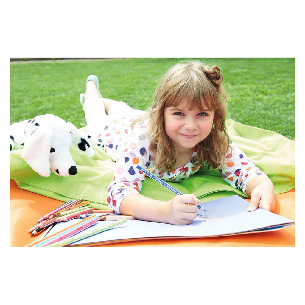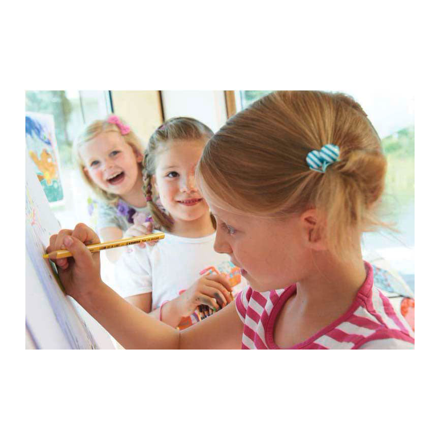 Voor kleine Picasso's STABILO Trio Dik kleurpotloden zijn ideaal voor kleine Picasso's die graag veel kleur gebruiken in de creatieve zin. De potloden hebben een dikke, ergonomische, driekantige vorm, zodat kinderen ze gemakkelijker kunnen vasthouden. · Houten kleurpotloden met ergonomische, op de kinderhandgeoriënteerde, driekantige vorm · Dikte van de kern 4,2 mm · Zeer verwerkt kleurafgifte · verkrijgbaar in sets met 12, 18 en 24 kleuren · Alle kleuren zijn los verkrijgbaar De STABILO Trio Dik kleurpotloden zijn driekantig en ontworpen om vermoeidheid van de hand te voorkomen. Daarnaast helpen ze kinderen een pen of potlood op de juiste manier vast te leren houden. Specifieke ontwikkeling voor exclusieve handen. De potloden geven heel gemakkelijk veel kleur af, zonder druk. De dikte van de kern is 4,2 mm, waardoor grote vlakken snel ingekleurd zijn. Ideaal voor het maken van de mooiste kunstwerken!