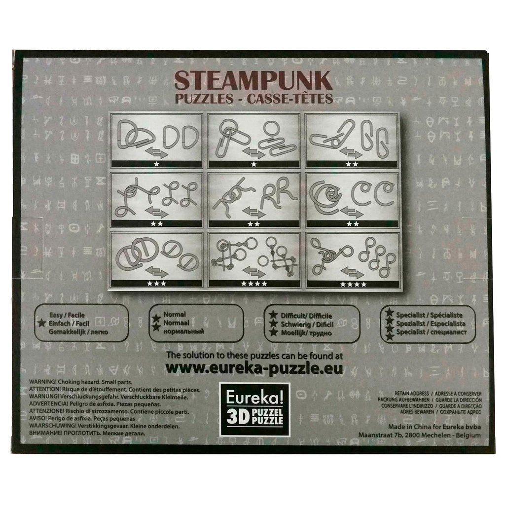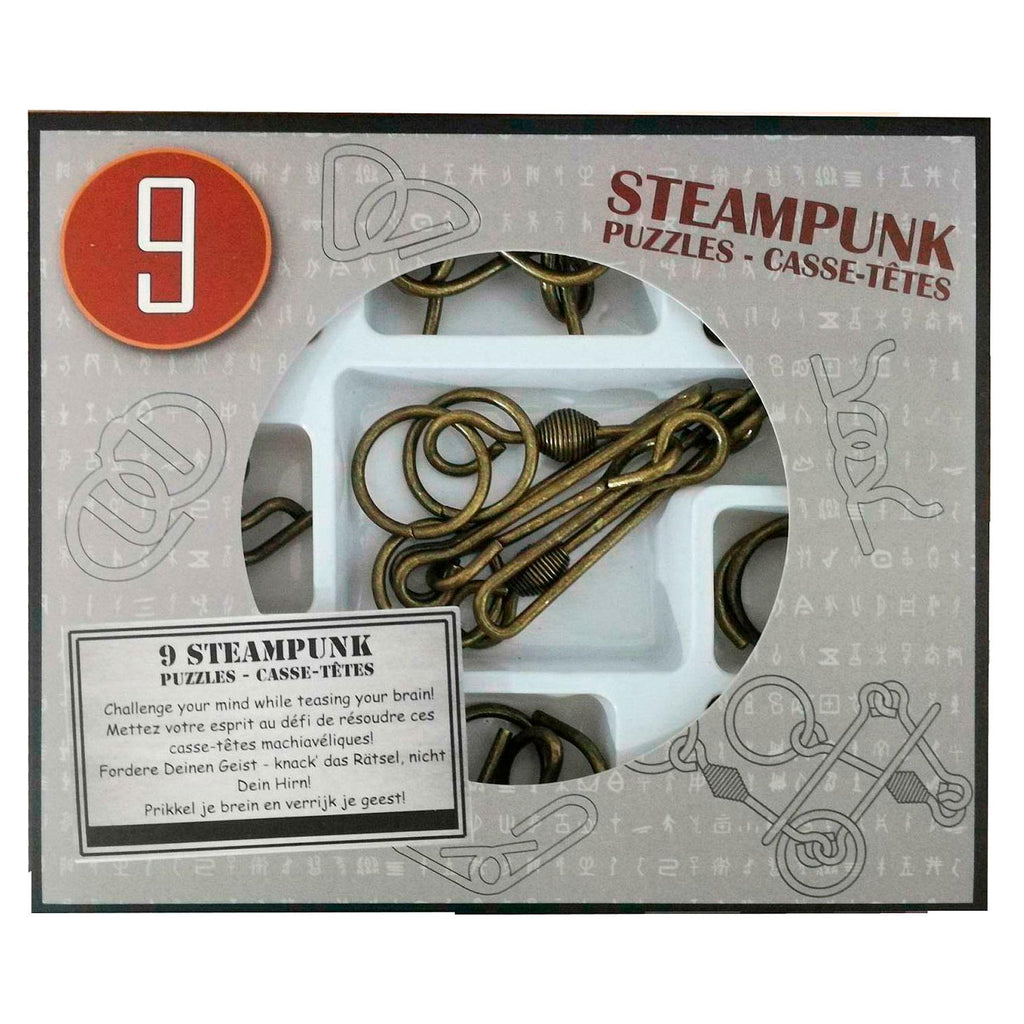 Daag je brein uit met deze metalen Grijze Steampunk Breinpuzzels. In een verpakking zitten 9 puzzels in 4 verschillende moeilijkheidscategorieën. Maak de onderdelen van de puzzels los en probeer daarna de onderdelen weer samen te voegen.