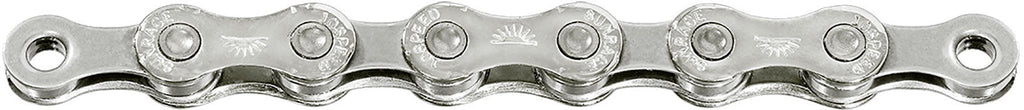 Chaîne SunRace Type : CN10A Couleur : argent Matière : acier - Taille : 1/2-3/32 - Nombre de vitesses : 10 vitesses - Poids : 281 grammes - Nombre de maillons : 116 Informations sur le produit : 10 vitesses