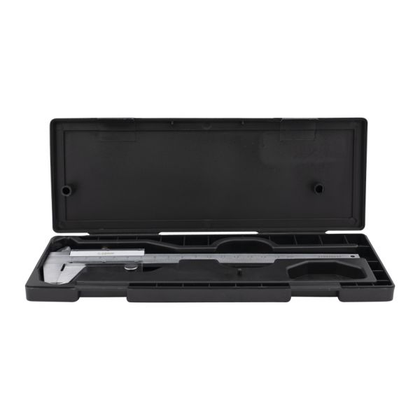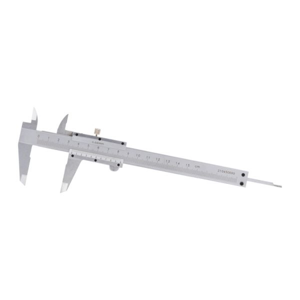 Pied à coulisse en acier inoxydable 0-150 mm Pied à coulisse en acier inoxydable de luxe avec une plage de mesure allant jusqu'à 15 cm. Échelle claire.