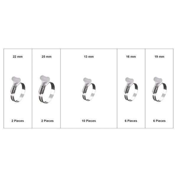 Colliers de serrage TOPGEAR avec aile ass. Boîte d'assortiment pratique de 26 pièces avec les colliers de serrage les plus courants avec écrou à oreilles.