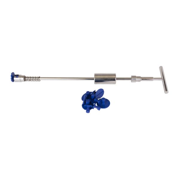 Uitgebreide uitdeukset bestaande uit: - 1 lijmpistool - 1 uitdeukhamer - 1 schuifhamer - 1 nylonpen - 1 microvezeldoek - 1 schraper - 4 lijmstaven - 8 trekstempels