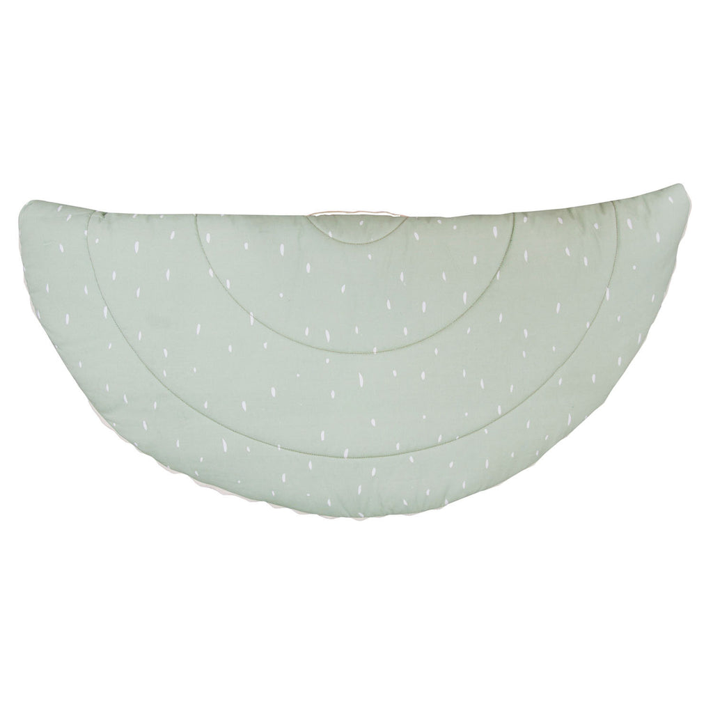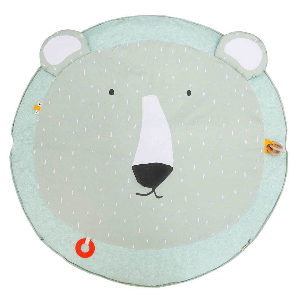 Deze Mr. Polar Bear speelmat met twee bogen en drie leuke speeltjes bezorgen elke kleine spruit urenlang speelplezier. Met het spiegeltje, de bijtring, houten ringen, rammelaar, knisperpapier, leuke labels en flapperende oren met verschillende zachte texturen, prikkelt deze speelmat alle zintuigen.