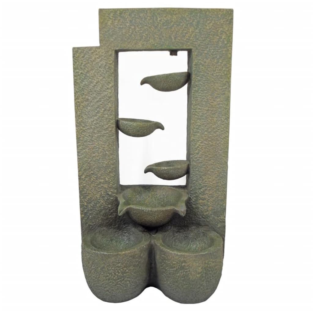 Het waterornament is 59,5 cm hoog en bestaat uit 5 door de natuur geïnspireerde waterkommen die in elkaar overlopen. Het is erg gemakkelijk te plaatsen en te combineren. Het water stroomt kalm van de ene kom in de volgende en eindeloze een ontspannen sfeer.