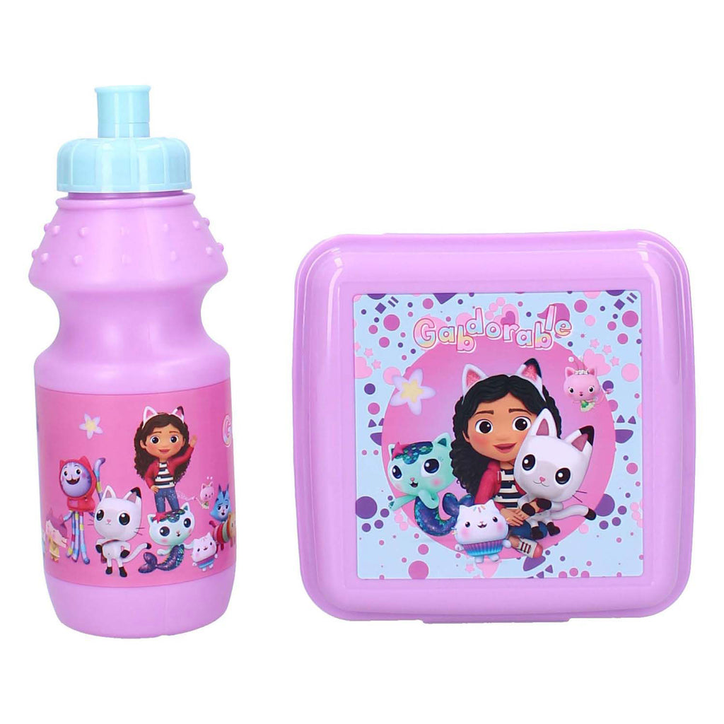 Deze lunchset uit de So Yummy collectie van Gabby's Dollhouse is perfect voor onderweg en combineert stijl met praktisch gemak. De set bestaat uit een paarse lunchtas, een drinkfles met draaidop, en een snackbox met een stevige sluiting. De tas heeft een ritssluiting om alles veilig op te bergen en een verstelbare schouderband voor comfortabel dragen. Dankzij de doorzichtige voorzijde is in één oogopslag te zien wat erin zit, ideaal voor een snelle controle. Met deze vrolijke set wordt lunchen een feestje!