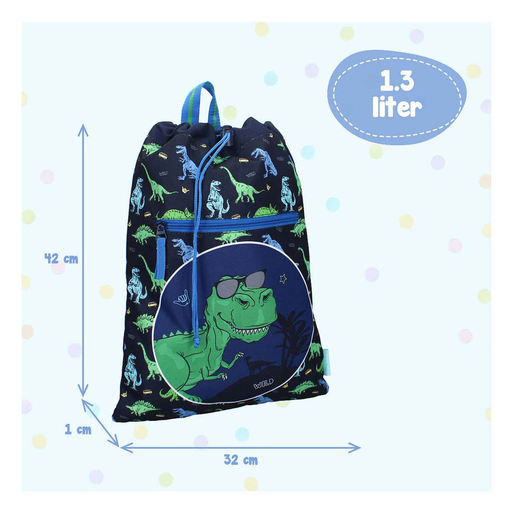 Raak geïnspireerd door deze te gekke gymtas van Prêt uit de 'Happy Go Lucky' collectie. Deze stoere gymtas is een ideaal item om mee te nemen naar de gym- of zwemles. De blauwe gymtas heeft een all-over dino print en een grote coole dinoa afgebeeld. De tas heeft een treksluiting met touwtjes en verstelbare schouderbanden. Ook heeft de tas een superhandig voorvak met ritssluiting voor kleine spullen, zoals sleutels, elastiekjes of een portemonnee. Dit maakt dit Met de verstelbare schouderbanden is deze tas voor iedereen op maat te maken. Zo kunnen kinderen al genieten van een coole gymtas!
