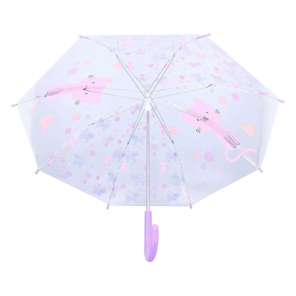 Maak kennis met de paraplu van Prêt uit de "Rainy Days" collectie! Deze transparante paraplu is perfect voor jonge kattenliefhebbers die droog willen blijven tijdens regenachtige dagen. Met paarse accenten en schattige plaatjes van katten voegt deze paraplu een speelse touch toe aan elke wandeling door de regen. Het transparante ontwerp maakt het mogelijk voor kinderen om de regen te zien vallen terwijl ze onder een ruime diameter droog blijven. De stevige constructie en comfortabele handgreep zorgen voor een duurzame paraplu die gemakkelijk te openen en te sluiten is, zelfs voor kleine handjes. De paarse accenten geven een leuke kleurtoevoeging, terwijl de kattenplaatjes een vleugje schattigheid brengen. Voeg deze charmante paraplu van Prêt uit de "Rainy Days" collectie toe aan je assortiment en bied je klanten een product dat zowel praktisch als leuk is. Perfect voor kinderen die hun liefde voor katten willen tonen, zelfs als het regent. Met deze paraplu blijven kinderen droog en stijlvol, terwijl ze genieten van de vrolijke kattenplaatjes en de opvallende paarse accenten. Voeg een vleugje kattenliefde toe aan regenachtige dagen met deze unieke en praktische paraplu!