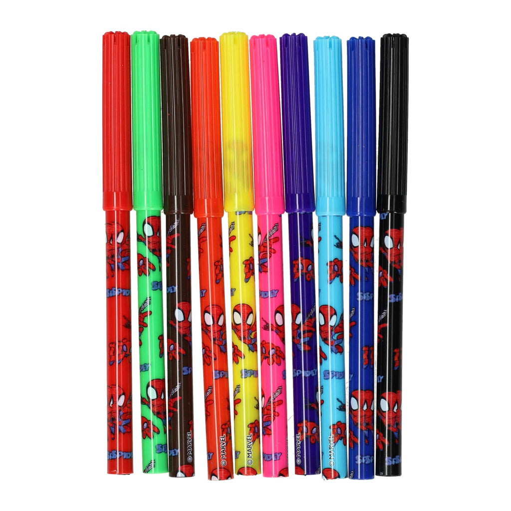 Set van 10 viltstiften met opdruk van Spidey en Zijn Geweldige Vriendjes. Gemaakt van kunststof en geschikt voor kinderen vanaf 3 jaar. Ideaal om mee te kleuren, tekenen en knutselen.