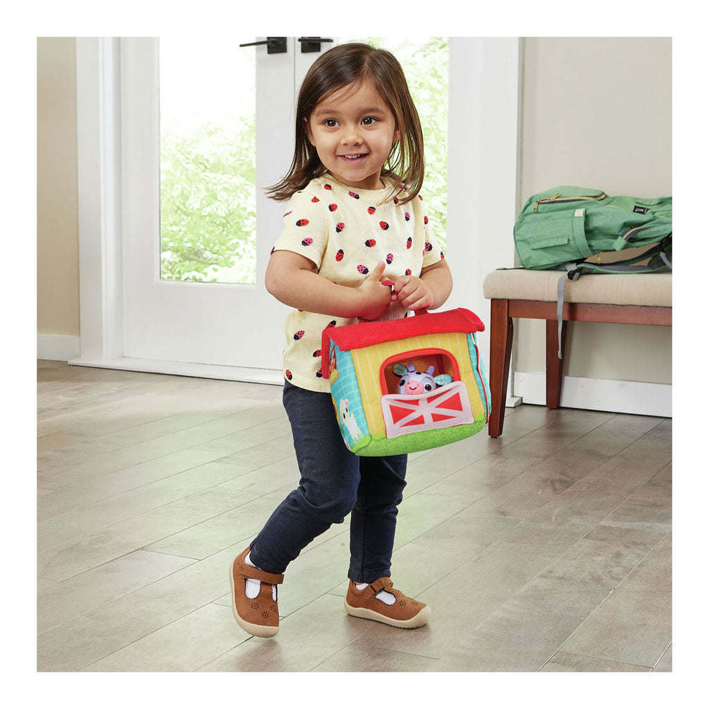 Ik word blij van de dieren op de boerderij! Knuffel de pluchen diertjes met verschillende stoftexturen en berg ze op in de boerderij om ze overal mee naartoe te nemen. Beweeg de tractor om grappige geluiden te activeren en druk op de toetsen om kennis te maken met de diertjes en hun geluiden én luister naar gezongen liedjes en melodietjes. Kom spelen op de boerderij!