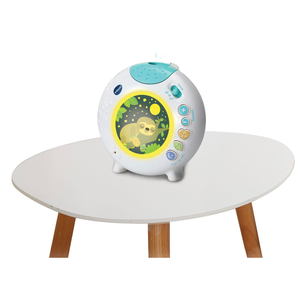 Snoozy de Luiaard neemt kleintjes mee naar een wonderlijk dromenland en laat ze genieten van een mooie lichtprojectie, gezongen liedjes en rustgevende melodietjes. Druk op de natuurgeluiden- entoets om natuurgeluiden en muziek te horen en stel de timer in op 15 van 45 minuten om het kleintje heerlijk te laten wegdromen.