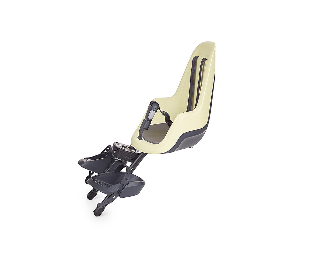 Siège enfant Bobike GO avant Lemon Sorbet. Le Bobike GO est un tout nouveau siège de vélo au design hollandais moderne et fin. La conception à double paroi et le matériau inaltérable en font également un siège enfant très résistant et sûr. Le Bobike GO mini est un siège enfant à monter à l'avant du vélo et adapté aux enfants d'environ 9 mois à 3 ans ou jusqu'à un poids corporel de 15 kg. Le Bobike GO mini est livré avec du matériel de montage pour les tubes de guidon plus étroits et plus larges. Un bloc de montage séparé est disponible pour le montage sur une potence Ahead.
