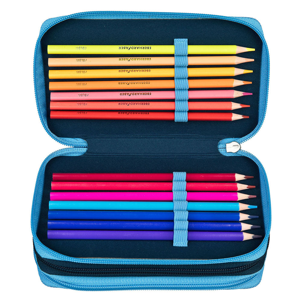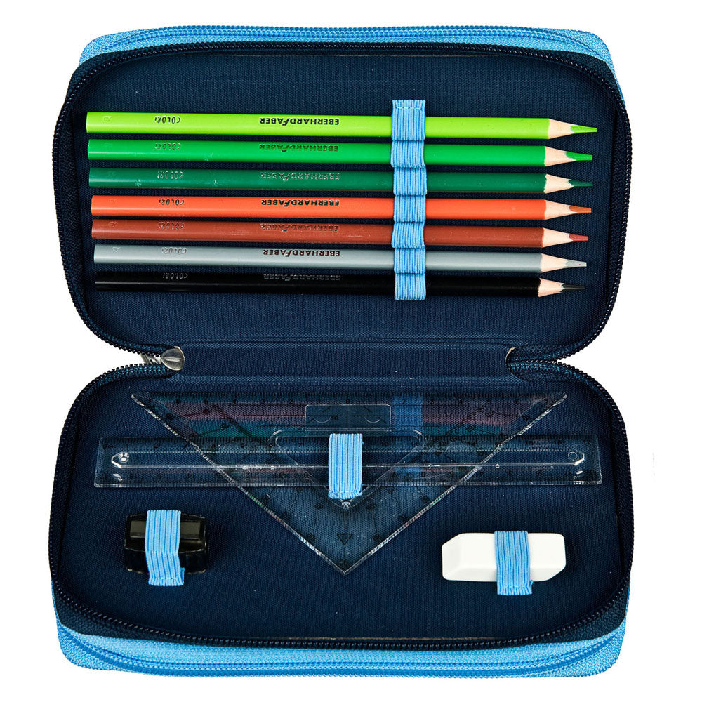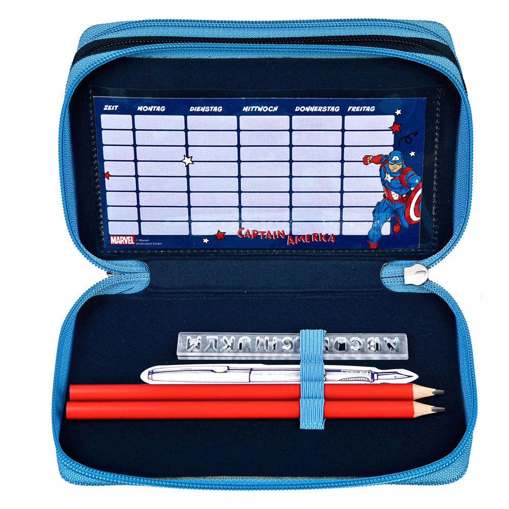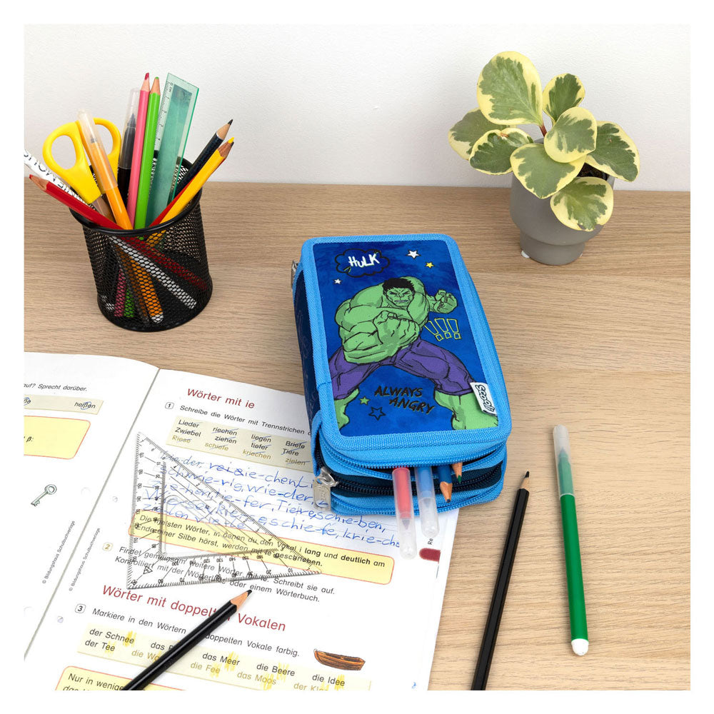 Met deze 3-laagse Avengers schooltas met inhoud, grijp jij nooit mis op school! Alles wat je maar nodig hebt, zit in deze etui. Inhoud: kleurpotloden, gom, puntenslijper, liniaal, geodriehoek, 2 potloden, vulpen, letterliniaal en roosterkaart. Geschikt voor kinderen vanaf 3 jaar oud.