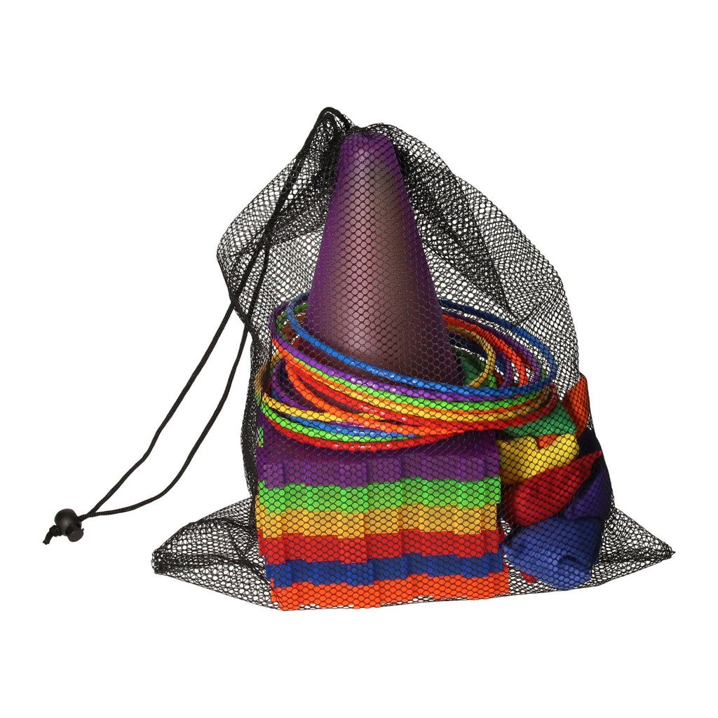 3 in 1 werpspel bestaande uit 31 onderdelen. De kleurrijke set bestaat uit 6 pionnen, 12 zakjes, 6 kleine werpringen, 6 grote werpringen en een zak van gaas om alles in op te bergen. Geschikt voor kinderen vanaf 3 jaar.