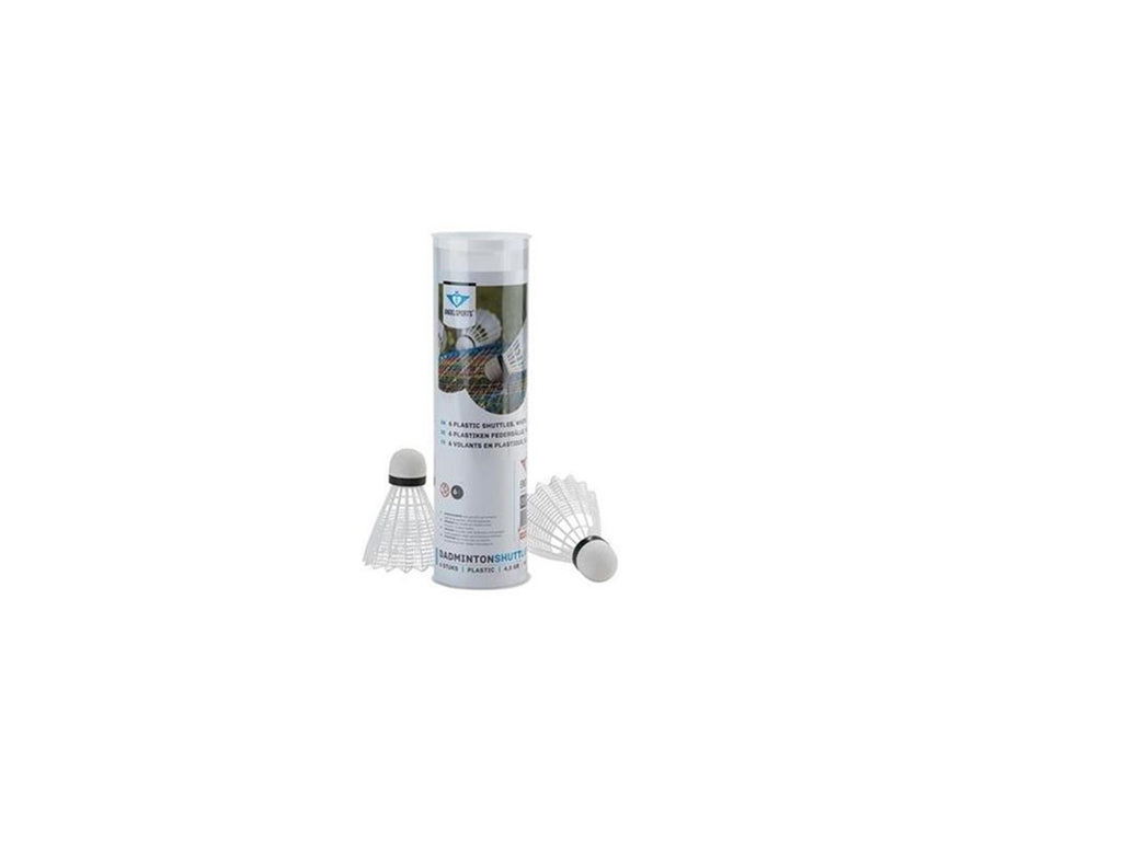Set van 6 kunststof shuttles in een koker. A-kwaliteit. Angelsport 6 shuttles in koker. SHUTTLES KUNSTSTOF WIT Witte badmintonshuttles van PVC en foam top. Deze witte shuttles zijn vooral geschikt voor recreatieve badmintonspelers, 6 stuks in een koker. Gewicht ongeveer 4,5-5gram.