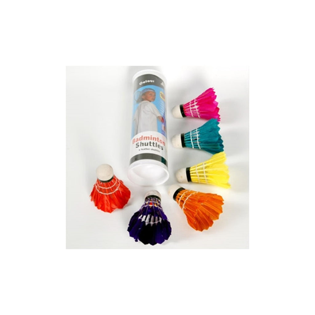 Set van 6 veren shuttles in een koker. A-kwaliteit.