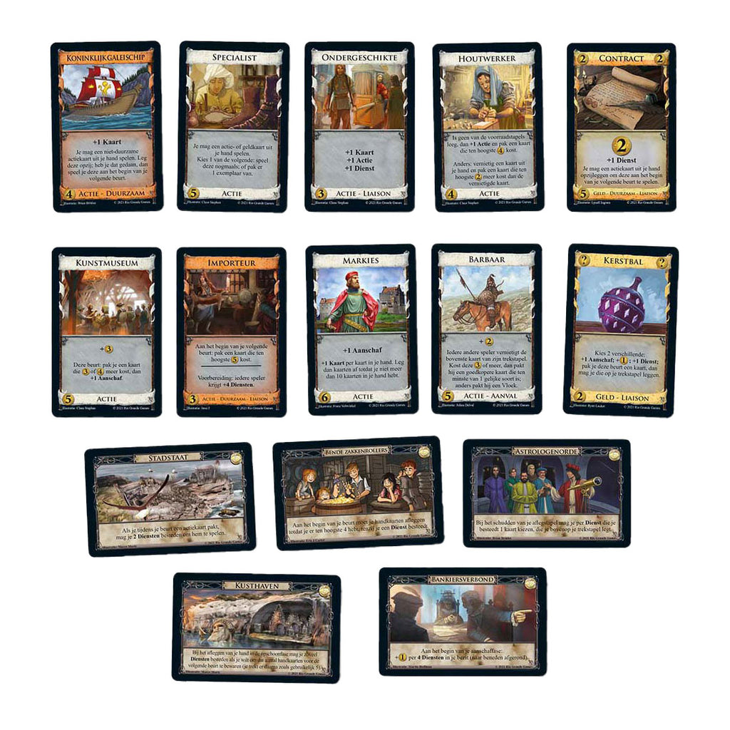 Breid de klassieke deckbuilder Dominion uit met Bondgenoten! Bondgenoten zijn speciale kaarten, die tijdens een spel naast het kaartenaanbod liggen. Elke bondgenoot komt met een eigen actie, die je door middel van dienstenfiches in werking kunt zetten. Er zijn meer dan twintig verschillende bondgenoten, zoals astrologen, holbewoners, bankiers, zakkenrollers en kunstenaars. Probeer ze allemaal!