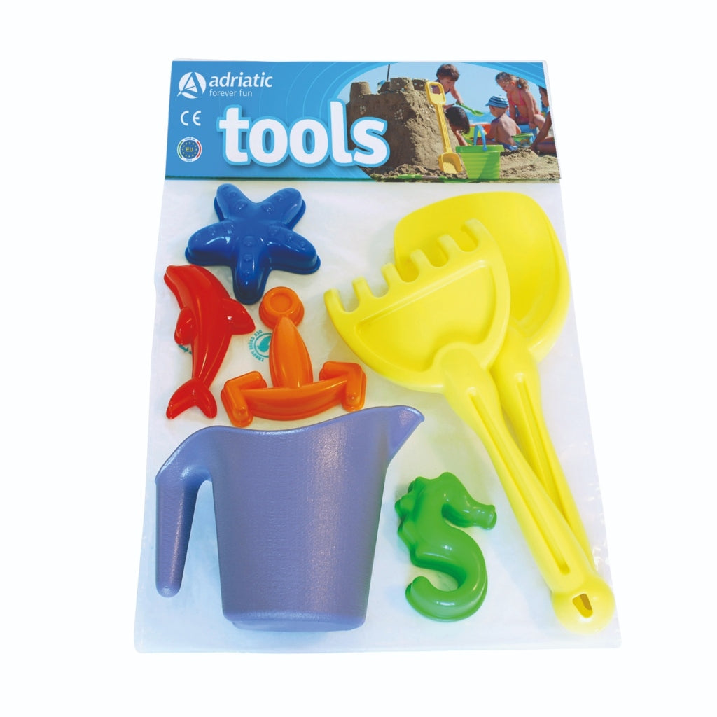 Adriatische zandspeelset met schepje, harkje, waterkan en 4 zandvormpjes