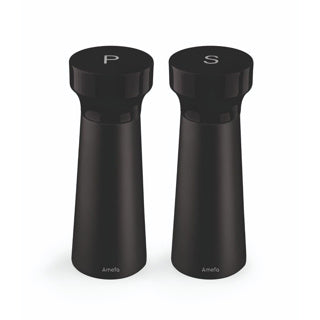 Breng je eten op smaak met deze trendy peper- en zoutmolens van Amefa. Door het moderne design van de molen is dit een echte eyecatcher op tafel! Dankzij het sterke rubberhout en de hoge kwaliteit slijpers zijn de molens zeer duurzaam. Deze stijlvolle set is afgewerkt met een zwarte afwerking, aan de bovenkant glanzend en mat aan de onderkant.