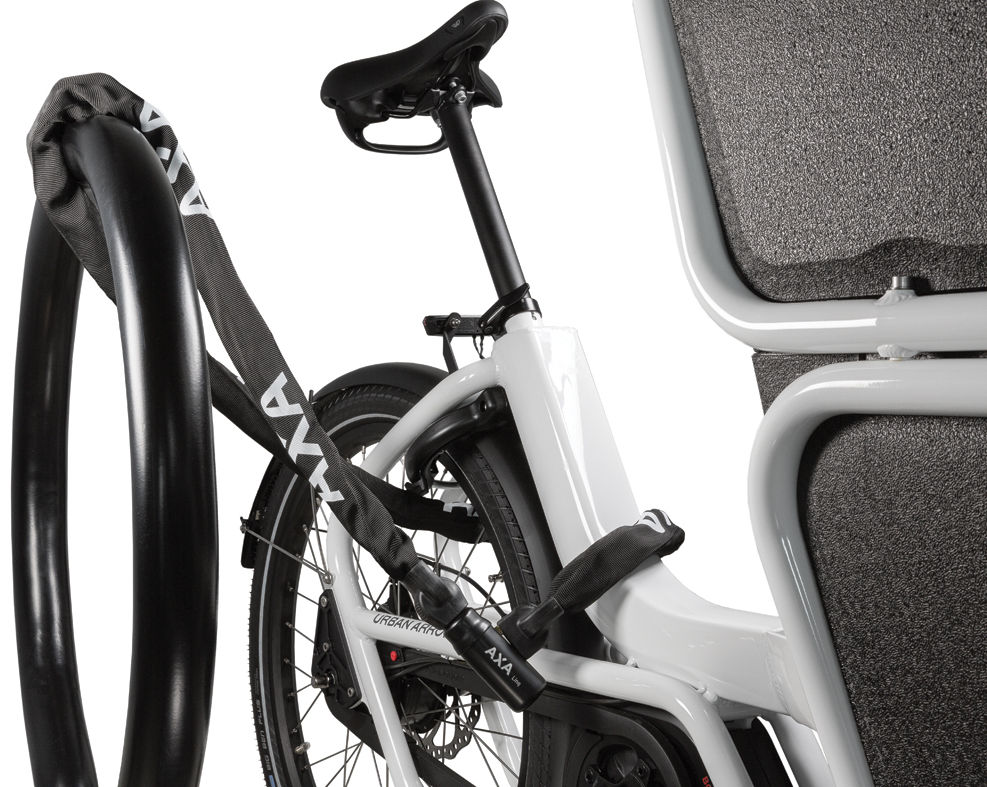 De AXA Linq is een extra sterk slot doordat de schakels doorlopen tot in de sluiting. Het soepele sluitmechanisme wordt bediend door een symmetrische sleutel. De laatste schakel van de ketting wordt gefixeerd in het slothuis door een zogenaamde deadbolt sluiting voor een extra stevige verbinding. Afgewerkt met rubberen grepen voorkomt het beschadigingen aan de fiets. AXA Safety index: 9 Anti boorplaat in cilinder Soepel sluitingsmechanisme Afgewerkt met rubberen grepen Sterke beschermhoes Symmetrische sleutel Online sleutelservice Specificaties: Merk: Axa Model: Linq City Type: Kettingslot Lengte: 180 cm Diameter: Ø 9,5 mm Kleur: Zwart Een bak/cargo fiets is een super handig vervoermiddel. Hij wordt gebruikt om de kinderen naar de kinderopvang te brengen of om boodschappen te doen. Maar door de hoge aanschafprijs is het ook een geliefd object voor dieven. De AXA Linq 180 is een extra sterk, goedgekeurd (ART 2 sterren, Sold Secure Gold en Varefakta) slot doordat de schakels doorlopen tot in de sluiting. De kwalitatief hoogwaardige ketting is uitermate geschikt voor de (extra) beveiliging van uw fiets. Met de lengte van 180 cm is het een ideale ketting om je bak/cargo fiets ergens aan vast te maken. Het soepele sluitmechanisme wordt bediend door een symmetrische sleutel waardoor het niet uitmaakt welke zijde van de sleutel u in uw slot steekt. De laatste schakel van de ketting wordt gefixeerd in het slothuis door een zogenaamde �deadbolt� sluiting voor een extra stevige verbinding. Mocht het gebeuren dat u uw fietssleutel kwijt bent, dan is dat geen probleem. Een extra sleutel kan via de AXA online sleutelservice besteld worden en wordt binnen enkele dagen geleverd. De rubberen grepen aan het slothuis zorgen voor extra grip tijdens het bedienen van uw slot. De AXA Linq heeft een zwarte hoes die de fiets beschermd tegen krassen.