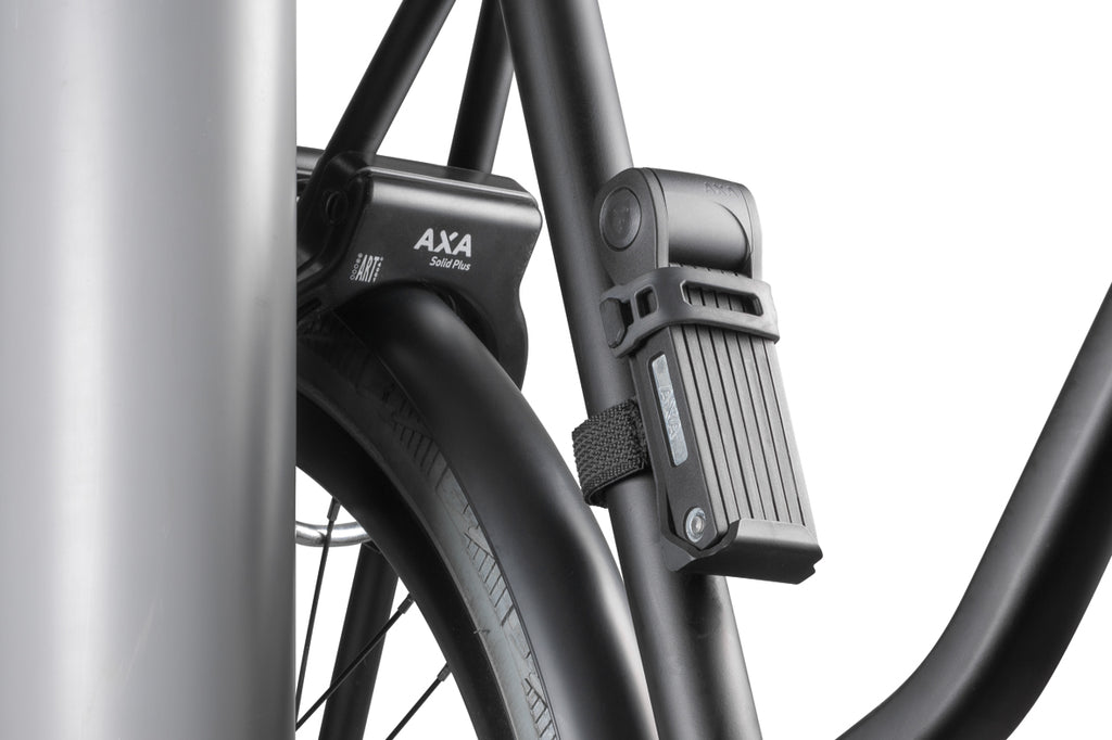 De AXA Fold Lite 80 is een 80 cm stijlvol, licht gewicht vouwslot. De AXA Fold Lite wordt inclusief handige houder geleverd. Deze kan op de plek van de bidonhouder gemonteerd worden of je zet hem om de stang vast met de 2 meegeleverde strips. Het slot zit aan de onderkant in de houder, hierdoor kantel je hem er eenvoudig uit. Aangezien je het slot niet uit de houder hoeft te schuiven past het op alle frames. Dankzij het revolutionaire sluitmechanisme wordt het slot gefixeerd in de houder, waardoor het niet rammelt tijdens het fietsen. Dankzij de flexibele scharnierpunten en het lichte gewicht is het slot moeiteloos in gebruik. Het slot is gemaakt van staal en heeft een zacht omhulsel waardoor er geen krassen op het frame van de fiets komen. De Fold Lite heeft een symmetrische sleutel wat erg prettig is bij het openen en sluiten, zeker in het donker! Veiligheidsniveau 7 Zacht omhulsel om krassen te voorkomen Handige bracket Past op alle frames Lengte 80 cm Schakels 20 x 5 mm De houder kan makkelijk gemonteerd worden op de bidon nokken De houder kan ook gemonteerd worden met 2 meegeleverde flexibele strips Gewicht 560 gr 8713249313733 De Fold Lite 80 is een lichtgewicht vouwslot voor dagelijks gebruik. Hij is ontwikkeld voor fietsen die voor een kortere tijd geparkeerd worden op een plek met een laag diefstalrisico (bijvoorbeeld in een dorp of een bewaakte stalling). Het vouwslot wordt inclusief handige houder geleverd. De houder kan op de bidonnokken gemonteerd worden. Mocht dat niet aanwezig zijn op de fiets, kan de houder aan de stang vastgemaakt worden met de meegeleverde strip. Dankzij het antirammelmechanisme heb je tijdens het fietsen geen rammelend geluid. De Fold Lite is 80 cm lang en heeft flexibele scharnierpunten, hierdoor kan je je fiets makkelijk aan een paal of hek vastmaken. De diameter van de gehard stalen schakels is 5 mm. Verder hebben de schakels een rubberen behuizing die ervoor zorgt dat er geen krassen op je fiets komen. Het vouwslot wordt met 2 sleutels geleverd. Het kan gebeuren dat je je fietssleutel kwijt bent. Dit is geen probleem! Een nieuwe sleutel kan snel en eenvoudig besteld worden via onze online sleutelservice. Hij wordt dan binnen enkele dagen geleverd. Noteer bij aanschaf van de Fold ergens het sleutelnummer. Dat heb je namelijk nodig om een nieuwe sleutel te bestellen. Lengte 80 cm Lichtgewicht, 560 gram Inclusief houder Past op alle frames Sleutelservice Veiligheidsniveau 7 Zacht omhulsel om krassen te voorkomen Handige bracket Past op alle frames Online sleutelservice Geschikt voor: stadsfietsen, racefietsen, mountainbikes en kinderfietsen Schakels 20 x 5 mm De houder kan makkelijk gemonteerd worden op de bidonnokken De houder kan ook gemonteerd worden met meegeleverde flexibele strip Specificaties: Merk: Axa Model: Fold Lite Type: Vouwslot Diameter schakel: 5 mm Automatische click-in: Nee Sleutelservice: Ja Cilinderbescherming: Nee Slotlengte: 80 cm Aantal sleutels: 2 Sluitmechanisme: Sleutel Beschermd tegen boren: Nee Code zelf instelbaar: Nee Lengte: 150 mm Breedte: 70 mm Hoogte: 30 mm Kleur: Zwart De Fold Lite 80 is een licht gewicht vouwslot voor dagelijks gebruik. Het vouwslot wordt inclusief handige houder geleverd. De houder kan op de bidonnokken gemonteerd worden. Mocht dat niet aanwezig zijn op de fiets, kan de houder aan de stang vastgemaakt worden met de 2 mee geleverde strips. Dankzij het antirammelmechanisme heb je tijdens het fietsen geen rammelend geluid. De Fold Lite is 80 cm lang en heeft flexibele scharnierpunten, hierdoor kan je je fiets makkelijk aan een paal of hek vastmaken. De diameter van de gehard stalen schakels is 5 mm. Verder hebben de schakels een rubberen behuizing die ervoor zorgt dat er geen krassen op je fiets komen. Het vouwslot wordt met 2 sleutels geleverd.