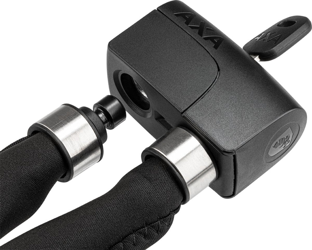 Scharnierpunten om het slot eenvoudig aan een groot object te leggen De AXA Foldable 8-100 is de opvolger van de AXA Foldable 800. Het opvouwbare slot verspreidt het beste van zowel een kettingslot als een vouwslot: het is zeer flexibel, sterk en gemakkelijk te vervoeren op een fiets. Het is een sleutelbediend slot dat geschikt is voor gebruik in een drukke omgeving met een hoog diefstalrisico. Dit gehard stalen opvouwbare slot is gemakkelijk te gebruiken omdat het meerdere schakelpunten heeft. De schakels hebben een diameter van 8 mm en in combinatie met de lengte van 100 cm kan je de fiets eenvoudig en veilig aan een groot object vergrendeld zijn. De cilinder wordt beschermd tegen vocht en vuil door een afdekkap om de sleuf te verlengen. De online sleutelservice biedt je de mogelijkheid om op elk moment een reservesleutel te bestellen. Het opvouwbare slot is verkrijgbaar met een neopreen hoes in de kleur zwart en kan gemakkelijk worden vervoerd in de mooie - niet rammelende - houder die aan het frame kan worden bevestigd. De AXA Fix is inbegrepen als er geen bevestigingspunten op het frame zijn. De AXA Fix is een slanke oplossing die flexibele bevestigingspunten aan het fietsframe toevoegt.