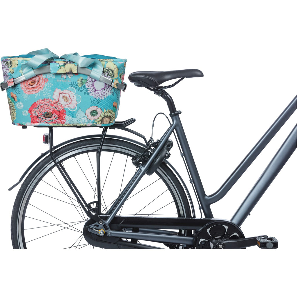 De Basil Bloom Field Carry all achtermand is modern, stoffen fietsmand voor achterop je fiets. Hij wordt inclusief een MIK Adapterplaat geleverd en is daarmee geschikt voor een MIK systeemdrager. Heb je geen MIK-bagagedrager op je (elektrische) fiets? Monteer dan de MIK Dragerplaat op je bagagedrager. De boodschappenmand is licht van gewicht en gemakkelijk afneembaar. Dankzij de aluminium beugel met curve kun je een afscherming aan de zadelzijde maken. Zo kun je comfortabel fietsen. De afgeschuurde zorgt ervoor dat de fietsmand zover mogelijk naar je zadel maar er niet tegenaan!- bevestigd kan worden. De Carry all mand is ideaal voor het dragen van je boodschappen (en andere spullen). Dankzij het aansnoerkoord houd jij je boodschappen op de plek. Daarnaast heeft de mand een binnenvak met verbrand. Met een inhoud van 22 liter neem je veel boodschappen mee.