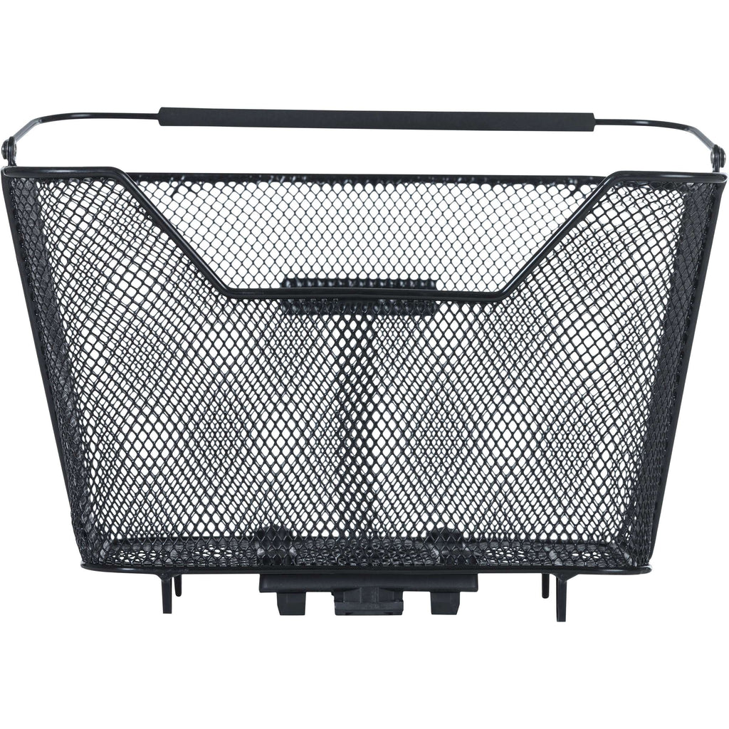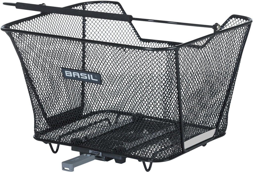 Basil Lesto MIK achtermand, fietsmand, staal, fijnmazig, voor achterop, breedterichting, met voorgemonteerde MIK adapterplaat 2.0 (70173), afneembaar, met Soft Grip hengsel, geselecteerd voor zadel, reflectie aan beide zijden, zwart.