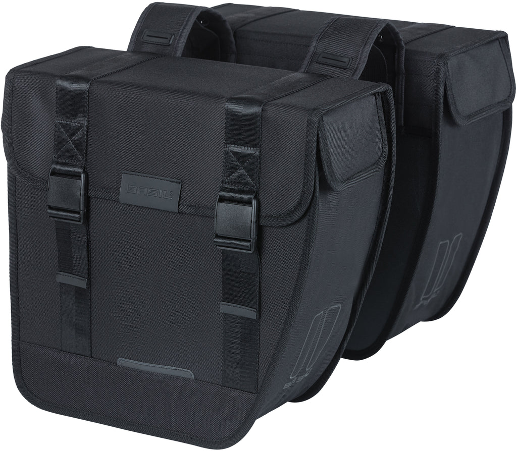 De Basil Tour dubbele fietstas is een luxe fietstas met een inhoud van 28 liter. Deze tas is perfect voor dagelijkse boodschappen of spullen voor een dagtocht. De tas is gemaakt van waterafstotend 600D polyester en heeft een vormvaste constructie. Met regenoren is de tas volledig waterdicht, zodat er geen water in de tas zit. Deeafgeronde voorkant zorgt ervoor dat je tijdens het fietsen niet met je hak tegen de tas komt. De tas is uitgerust met eenvoudig bedienbare sluitingen, waardoor je geen kracht hoeft in te zetten om de tas te openen. Met ton sur ton reflectie aan 3 zijden ben je goed zichtbaar in het donker. De tas heeft een comfortabel handvat en is voorzien van een bodem met afvoergat. De montage kan worden gedaan met behulp van een universele brug (compatibel met Basil DBS, MIK en RT) of een patch met klittenbandsluiting aan de onderzijde van de tas. De tas is geheel gevoerd en verstevigd met LDPE-platen om doorbuigen te voorkomen. De afwerking is netjes met PU webbing stoppers en het Basil logo. Productspecificaties - Inhoud: 28 liter - Materiaal: Waterafstotend 600D polyester - Afgeronde voorkant voor meer ruimte voor schoenhak - Comfortabel handvat - Sluitingen: eenvoudig te gebruiken - Reflectie: tone in tone reflectie aan 3 zijden - Bodem met afvoergat - Montage: universele brug (compatibel met Basil DBS, MIK en RT) of patch met klittenbandsluiting - Geheel gevoerd met versteviging (LDPE platen) - Afwerking: PU webbing stoppers en Basil logo