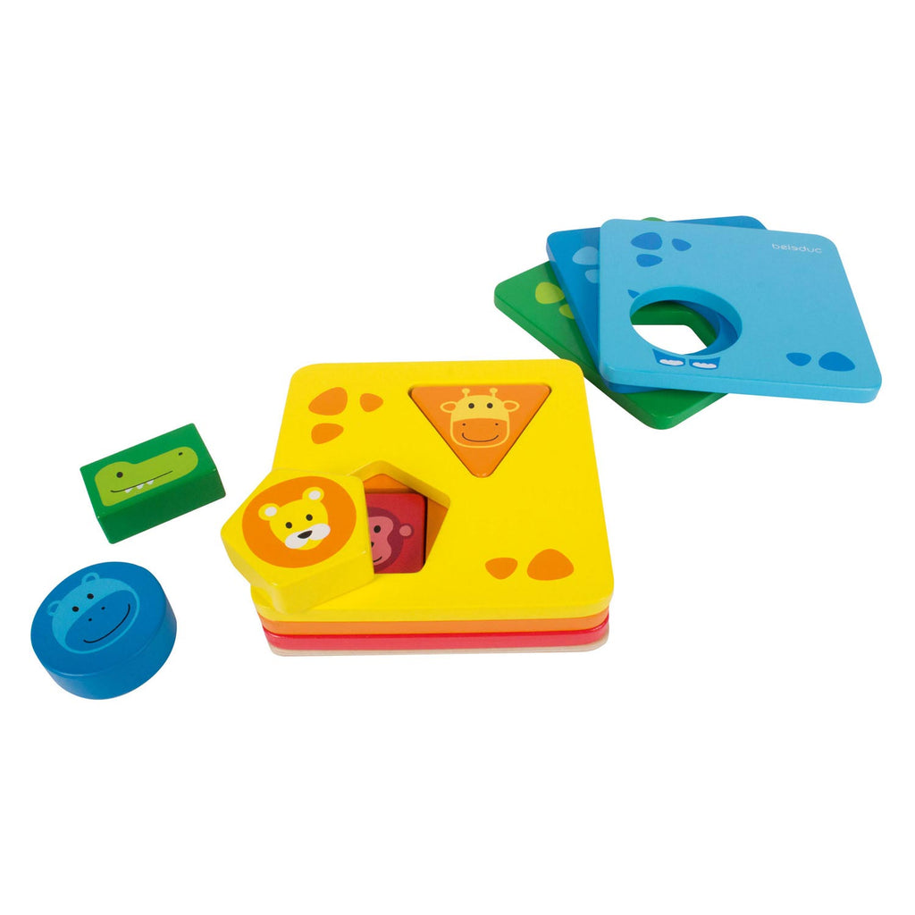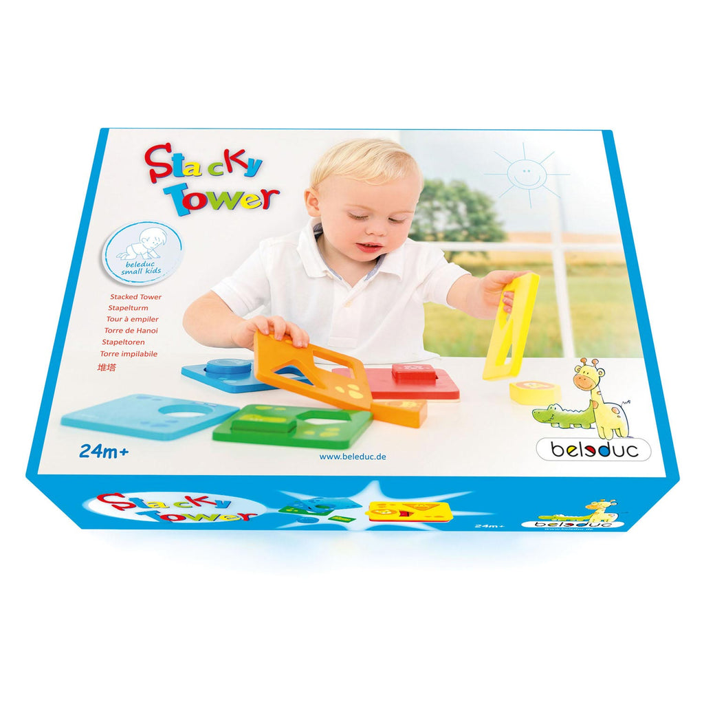 Puzzel op een andere manier! Met de Stacky Tower kunnen kinderen niet alleen sorteren, maar ook leren vormen te herkennen en een driedimensionale toren bouwen. De vriendelijke safaridieren helpen daarbij enorm dankzij hun vrolijke kleuren.