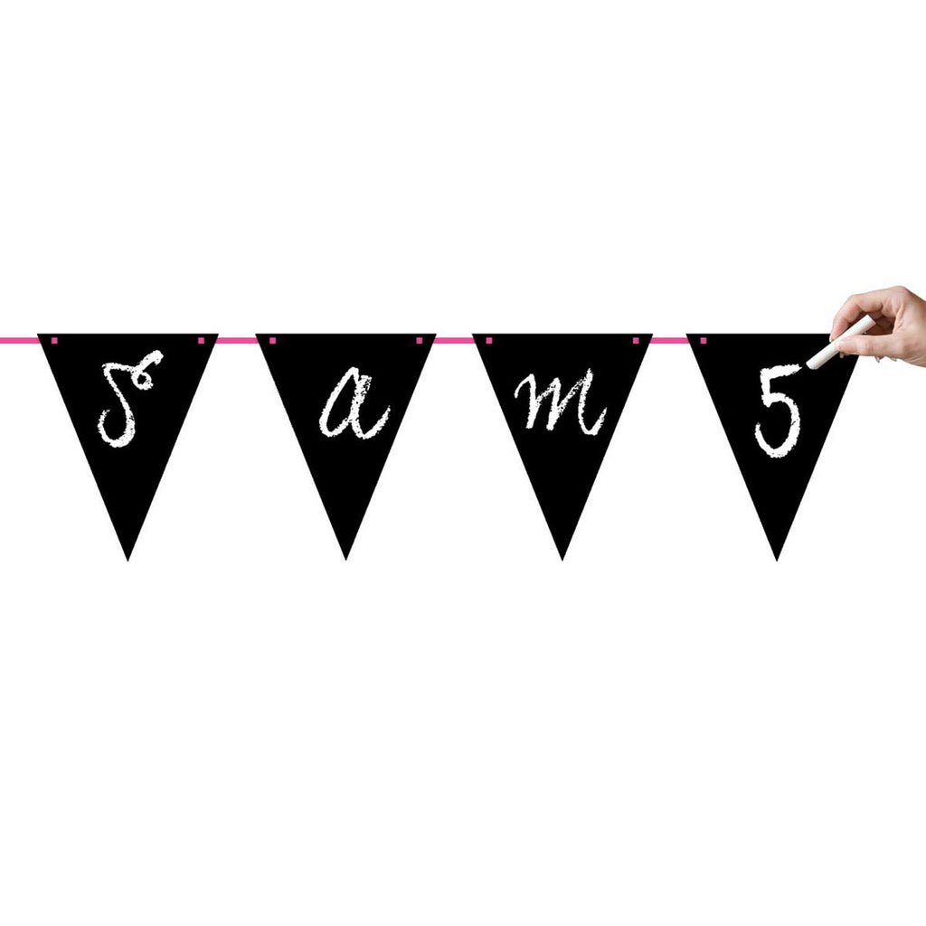 Maak je persoonlijke feestje met deze schrijfbare vlaggenlijn! De vlaggenlijn heeft een lengte van 6 meter en bestaat uit 10 vlaggetjes met een afmeting van 21 cm x 27 cm. Schrijf op de vlaggetjes de naam van de oudere, de leeftijd of iets anders leuks. Het krijtje wordt opgenomen, dus je kunt direct aan de slag!