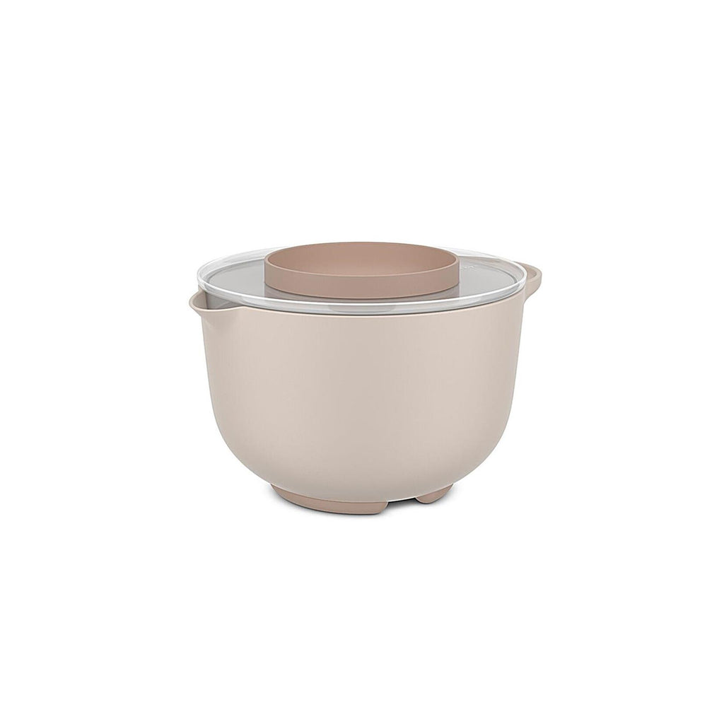 Beslagkom van 3000 ml met handgreep, schenktuit, antislipbodem en spatdeksel. Geschikt voor mixen en bewaren. Gemaakt van voedselveilig kunststof.